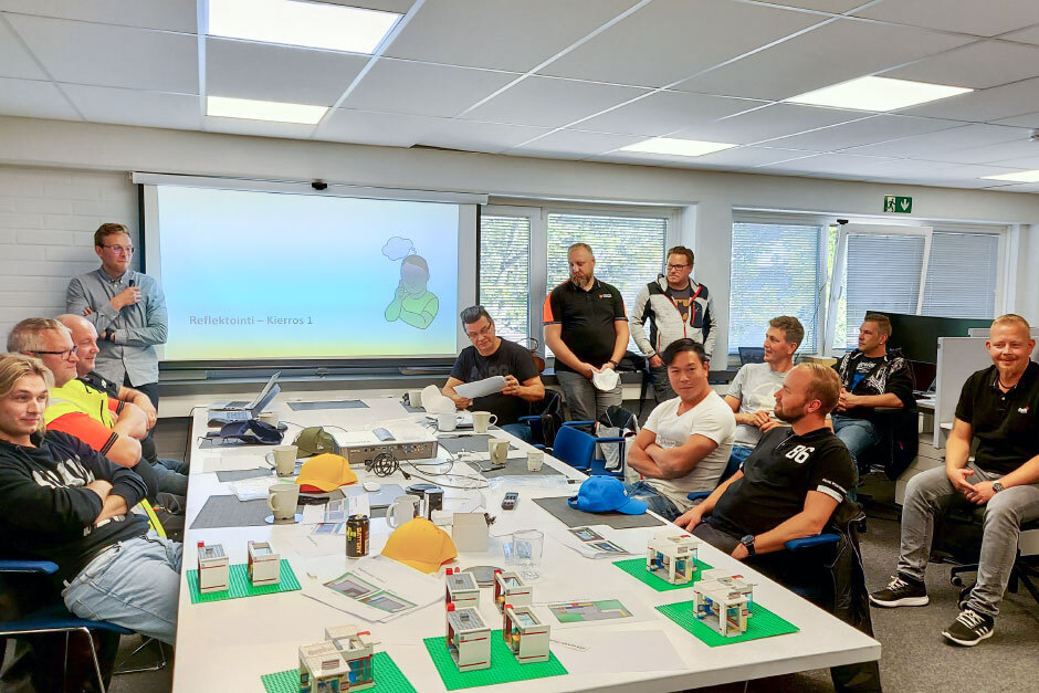 Koska neuvotteluhuoneeseemme ei mahtunut kokonaista rakennuskohdetta, lähdettiin tahtituotantoa simuloimaan hieman pienemmässä skaalassa. Ennen ensimmäistä simulaatiokierrosta väkeä hieman hymyilytti Lego-pussit kädessä ja työroolia merkkaava lippalakki päässä, mutta leikki vakavoitui nopeasti, kun harjoiteltiin sairaalan rakentamista perinteisellä tavalla. Työvaiheet venyivät, porukka suhasi paikasta toiseen, virheitä tuli valtavasti ja budjetoitu aika ylittyi yli tuplasti.